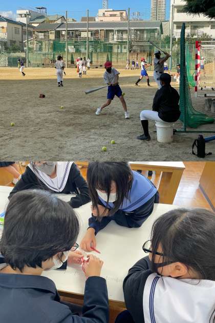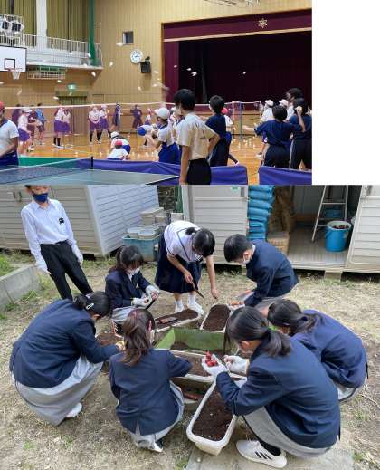 野球部、家庭科部、サッカー部、卓球部、バドミントン部、園芸部の様子です。