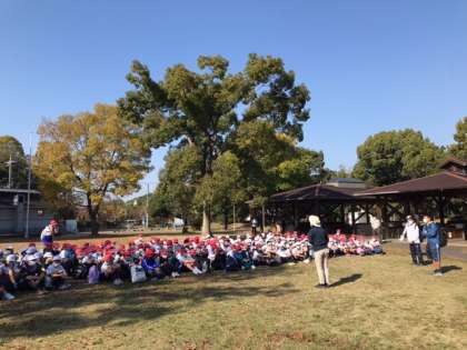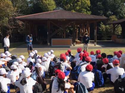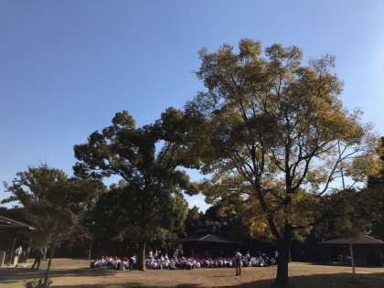 色づいた樹々が青空に映えてとても美しい景色が広がっています。