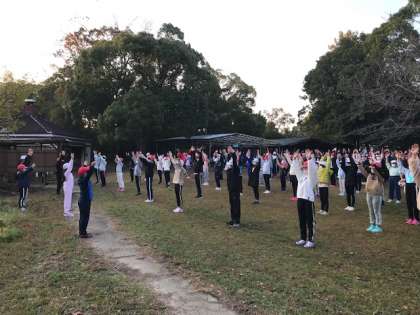 まずは、ラジオ体操で身体を目覚めさせ、2日めの活動にそなえます。