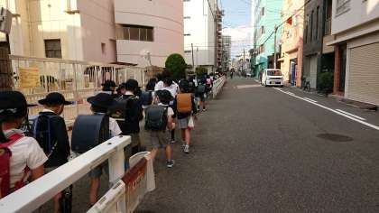 また、集団下校する子どもたちは地区ごとに分かれ、下校の仕方を確認しながら担当の先生と帰りました。