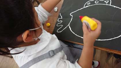今、図画工作科では「ふしぎな魚」をかいています。