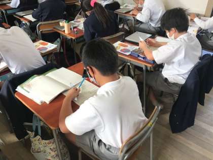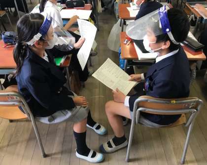 まず、1人で考えたあと、ペアで交流して話し合います。