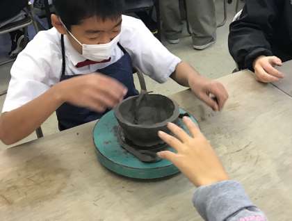 みんな指先をうまく使って形を整えていきます。糸を使って切り口を水平に整えている子もいます。