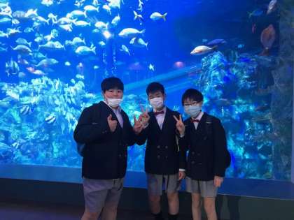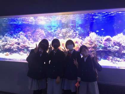 まずは、エントランスを入ったところにある美しい二つの水槽の前で、はいポーズ!