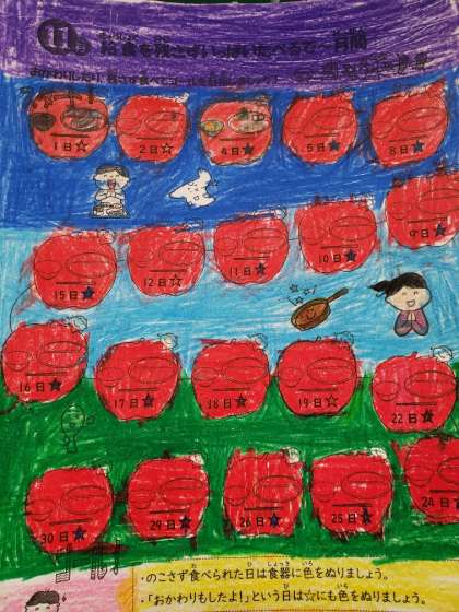 給食を完食できたらカードに色をぬり、1か月間続けることができたら賞状がもらえます。「毎日ちゃんと食べられたから絶対もらえるねん!」と楽しみにしている子もいました。