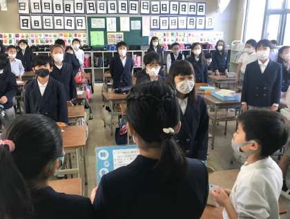 日直さんが前に出て、さわやかに朝のあいさつをします。