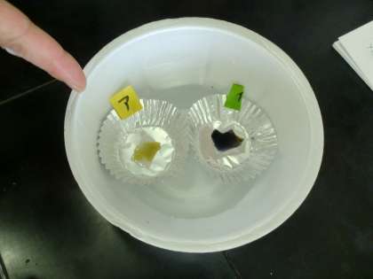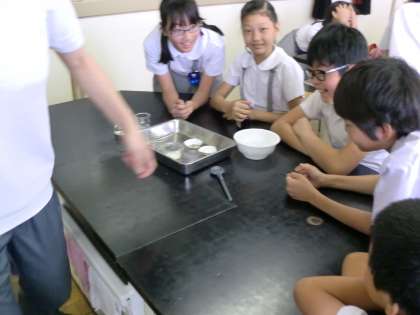 唾液によってでんぷんがどう変化するか実験しています。