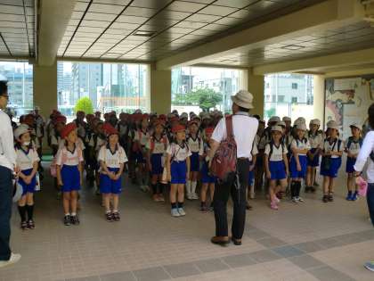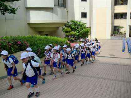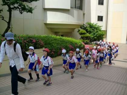 4年生が遠足(錦織公園)へ出発しました。