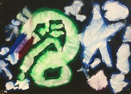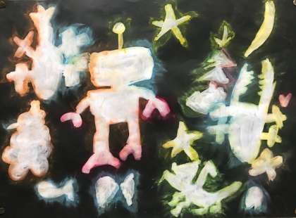 黒い画用紙にパスを使って「ひかりのせかい」を表現していきます。