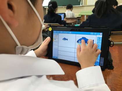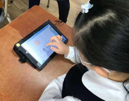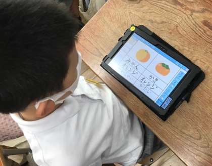 まず一度お手本通りに作ってみたあと、自分でオリジナルのスライドを作っていきます。好きなスタンプなどを選びながら、楽しく学習を進めていました。