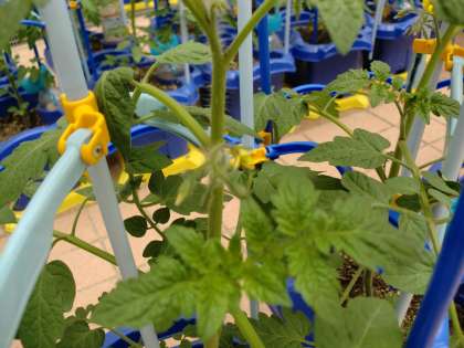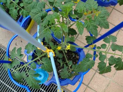 先日苗を植えたミニトマト。子どもたちが毎日水やりをして、また太陽をいっぱい浴びて、どんどん成長しています。中には花が咲くものもでてきました。