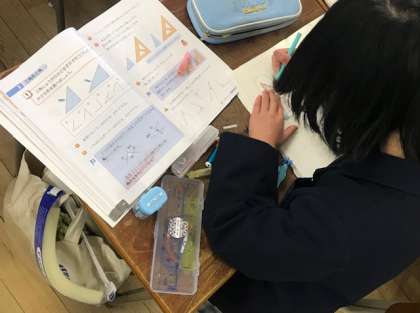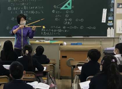 2種類の三角定規(直角三角形と直角二等辺三角形)を比べて、角の大きさについて考える学習です。