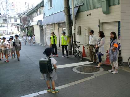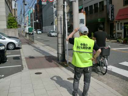 危険な場所や交差点などを中心に見守り活動していただいています。
