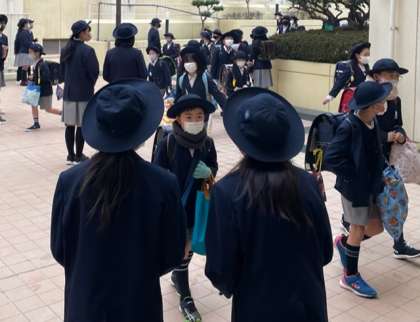 寒さに負けずに、相手の人の目をしっかりと見てあいさつができています!