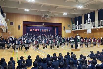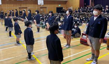 6年生からは、1年生と3年生に、合唱「最後のチャイム」と合奏「クール・ジャパン」がプレゼントされました。