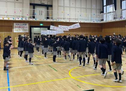 最後に、5年生が作った花道を通って、6年生が退場しました。みんなの心が温まる、とてもいい集会となりました。