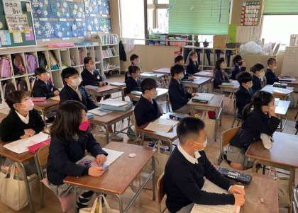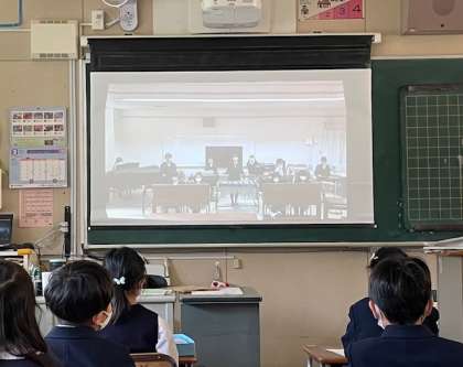 映像で「メロディクラブ」の発表を一生懸命に見ています。1年生にとってはまだまだ先のことですが、4年生になったら、好きなクラブに入って、みんなで楽しく活動したいですね。