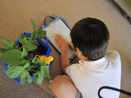みんな観察カードに一生懸命あさがおの絵を描きました。