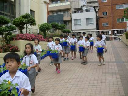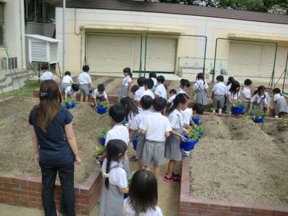 あさがおの間引きを行いました。間引いたものは、今日持って帰りました。