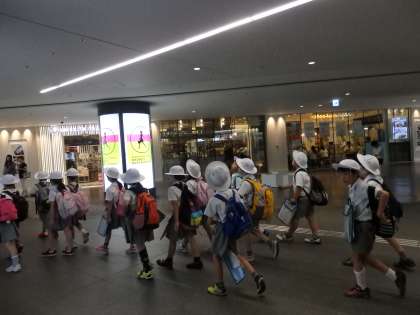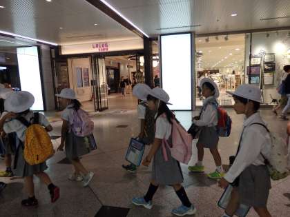 最後に、大阪駅の地下街の様子を見学しました。地下街には、お店がたくさんあることも学びました。