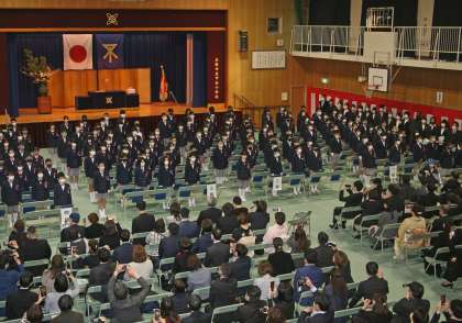 卒業生巣立ちのことばでは、小学校生活の思い出や中学校生活に向けた決意、まわりの人々や家族に対する感謝の気持ちなどが力強く語られました。そして「最後のチャイム」「旅立ちの日に」の美しい合唱が講堂内に響き渡りました。