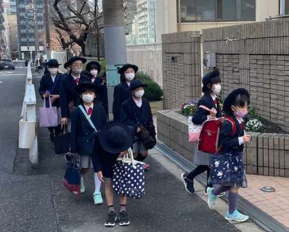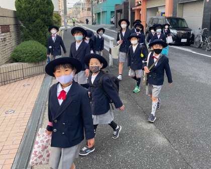 今朝の登校のようすです。きれいな朝日が輝く中、子どもたちは元気に登校してきました。最終日がいい天気でよかったね。