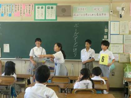 6年生がサポートリーダーとなり、たてわり班の友だちを優しくまとめていました。