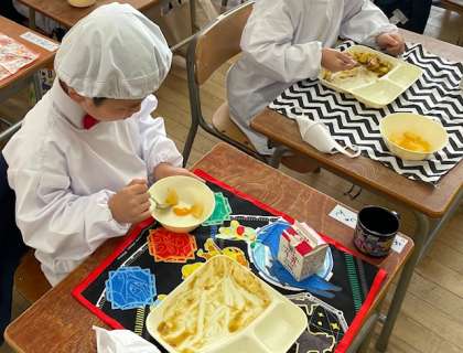 みんなニコニコ笑顔で、しっかりと黙食していました。とてもおいしかったね!