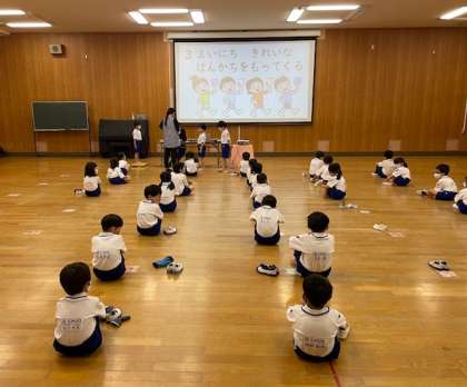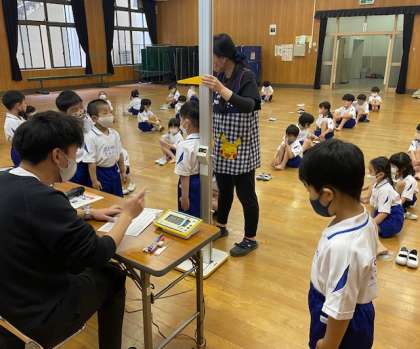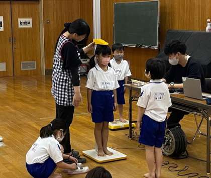 今日は1年生が発育測定を行いました。多目的ホールでゆったりと距離をとりながら、1人ずつ順番に身長と体重を測ります。6年後にどれだけ大きくなっているか今から楽しみですね。