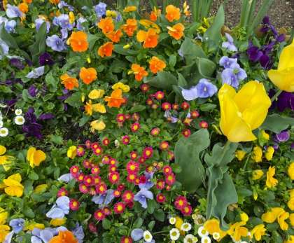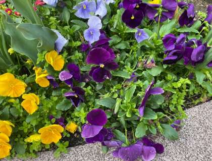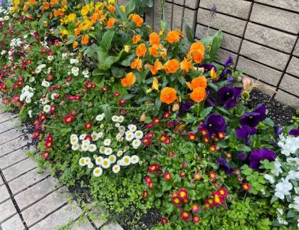 雨あがりの朝、学校の草花には、雨粒が少し残って輝いています。