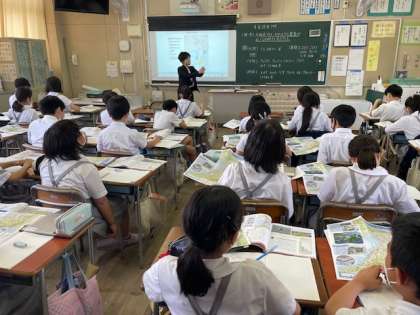 自分たちの住む大阪府の様子について、教科書だけでなく、地図やタブレットを活用して、より豊富な情報をもとに調べていきました。