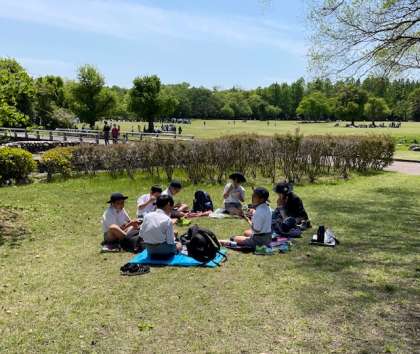 美しい自然の中で、おいしいお弁当にみんな舌鼓を打っていました。