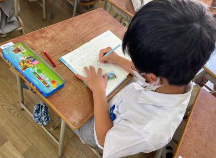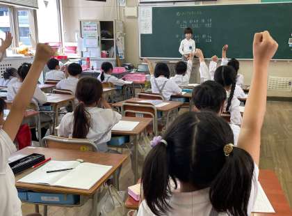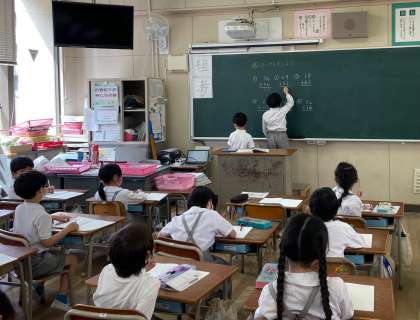 それぞれ自分で考えたあと、前に出て発表します。同じ考え方やちがう考え方を出し合い、話し合って学習を進めていきました。