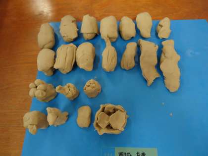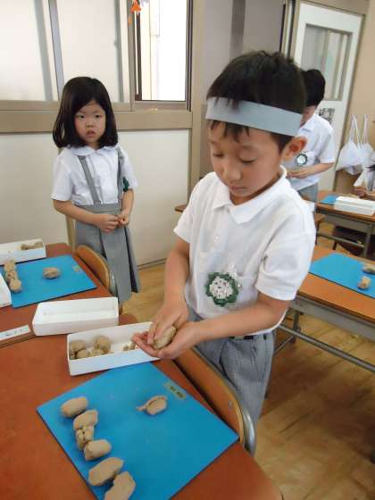 図工の時間にねんどでお寿司を作りました。