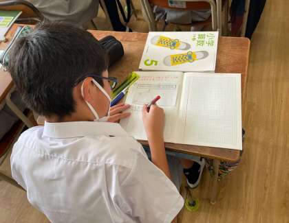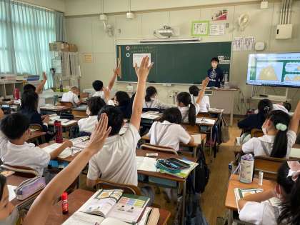 5年生の算数の時間です。四角形の4つの角の大きさの和が何度になるかを学習しています。