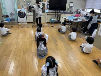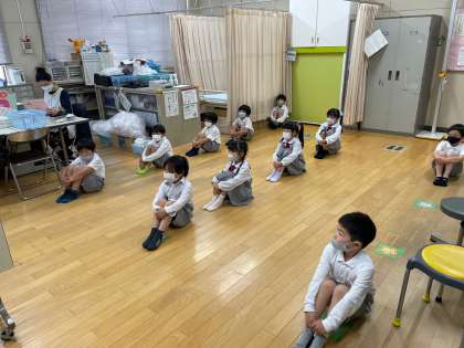 保健室に入ったら、まず、先生からのお話を聞きます。とてもいい姿勢で聞けていますね。