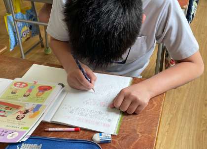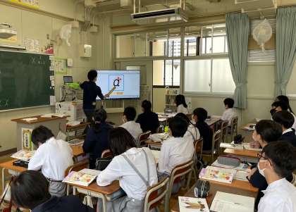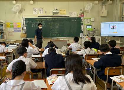 6年生の算数の時間です。数字に加えてアルファベットを使った式について学習しています。