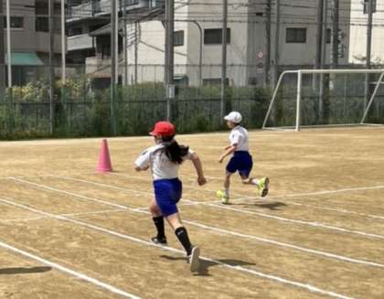 一番大切なスタートダッシュの仕方を確認したり、ゴールラインの向こう側まで走り切る練習をしたりしました。本番で実力が発揮できますように。