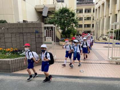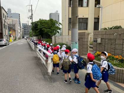 今日は1年生の遠足です。朝は涼しいですが、これから天気がよくなってきそうです。楽しい遠足にしましょうね。行ってらっしゃい!