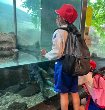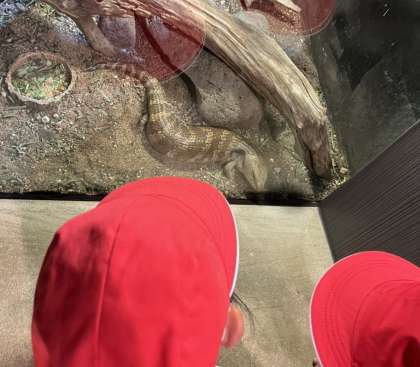 続いて、爬虫類ゾーンのヘビやオオトカゲです。水の中にはワニもいました。