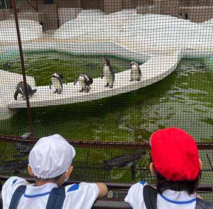 可愛らしいペンギンさんが並んでいます。なんとなく子どもたちと似ているような。。。
