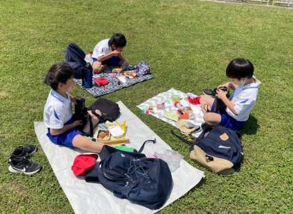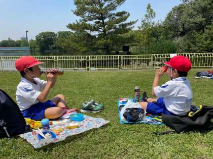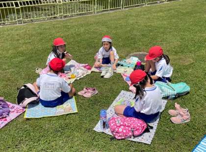 ふかふかの芝生の上にシートを広げて、おいしいお弁当をいただきました。