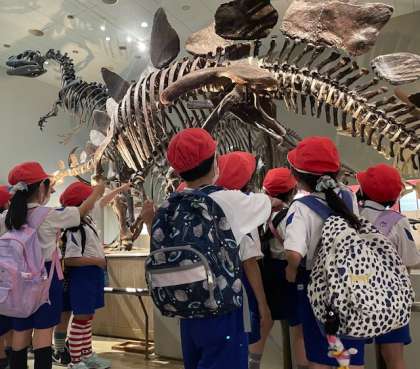 巨大な恐竜の標本などにびっくりしながら、長居公園をあとにした子どもたちでした。たくさん遊んでたくさん学んだ遠足、とても楽しかったね!