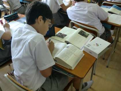 辞書を使って意味調べをしています。さすが6年生です。辞書引きの速さには驚かされます。