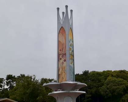 オリエンテーリングのゴールは、高くそびえるフラワータワー。みんなタワーをめざして戻ってきました。