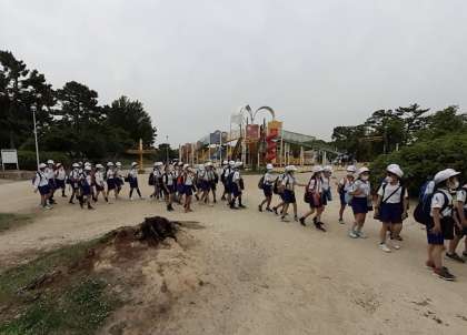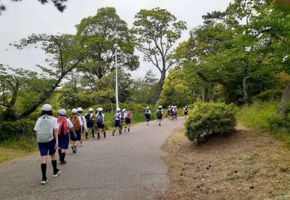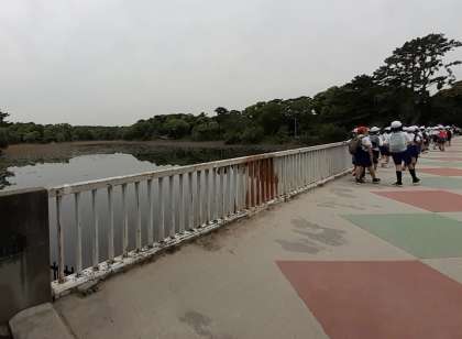 楽しく過ごした緑地公園に別れを告げ、学校に向かいます。4年生として頑張る気持ちがたくさん見られたいい遠足でした。