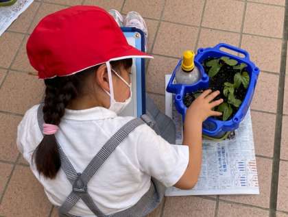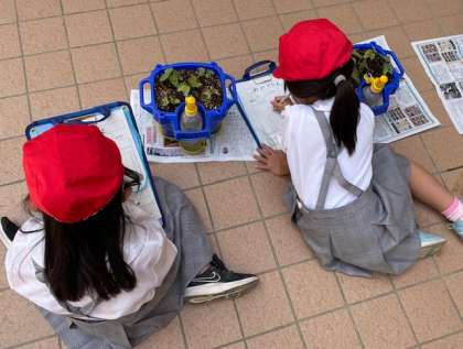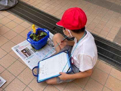 ただ見るだけでなく、葉を軽くさわって表面の様子を確かめるなど、しっかりと観察していました。