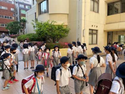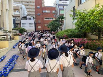 美しい青空が広がる朝、今年度最初のあいさつ週間がはじまりました。児童会の子どもたちがピロティに立ち、さわやかなあいさつでみんなを迎え入れました。