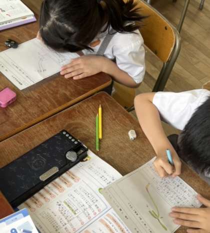 観察カードに気づいたことや気になったことをたくさん綴っています。定規を当てて、草丈や葉の大きさを正確に調べていますね。