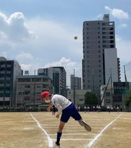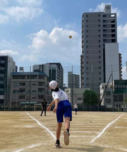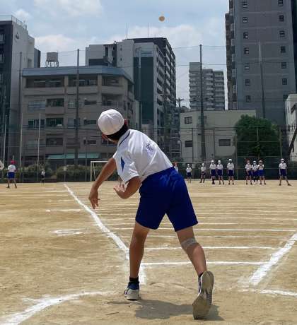 遠くへ投げることができた際には、順番を待っている子どもたちから一斉に歓声があがりました。